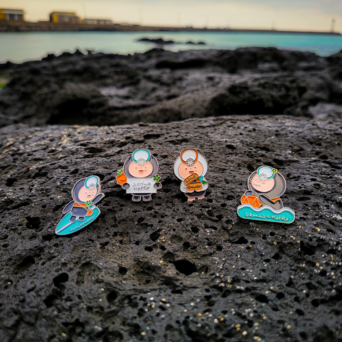 대체되는 상품은 사진 속 귀여운 해녀 뱃지들이에요!